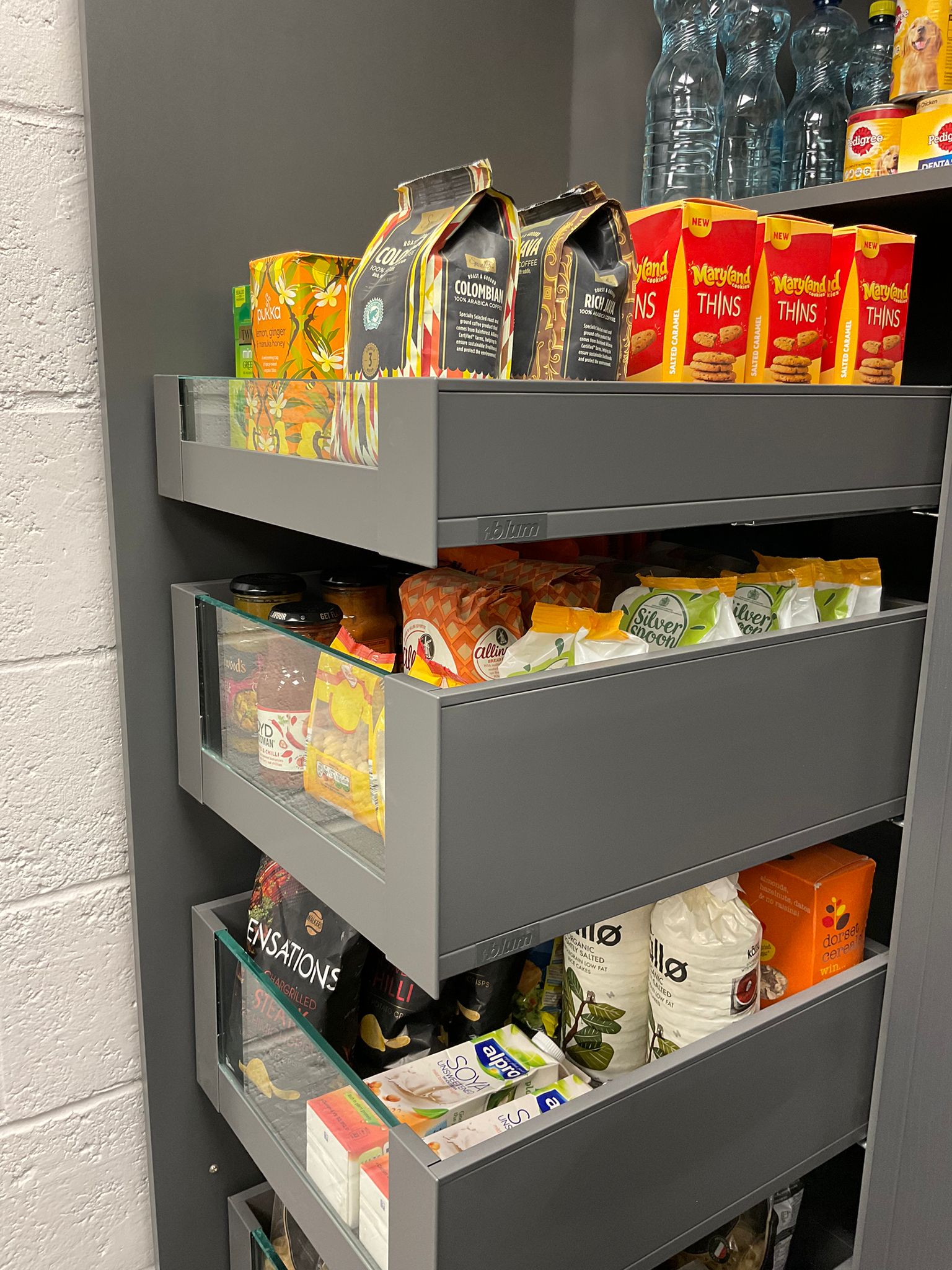 The Legrabox Pure drawer system has a modern slim profile with 12.8mm thick side walls, this combined with the 40kg Blumotion soft close runners make it an extremely robust and versatile drawer which opens and closes effortlessly even when heavily loaded. Legrabox offers three-dimensional front adjustment within the drawer side.